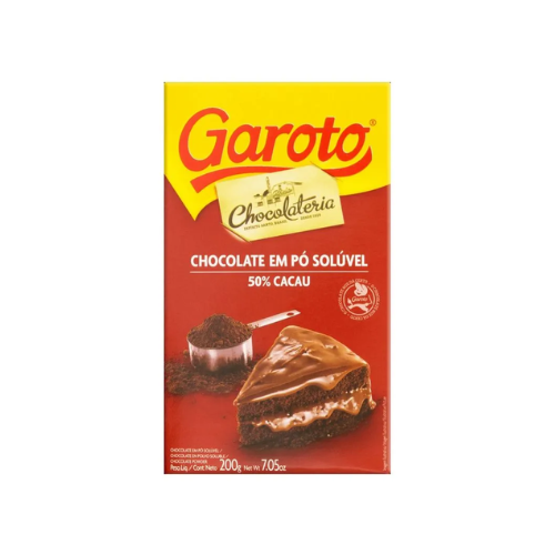 Ingredientes: Cacau em pó solúvel, açúcar e aromatizante.